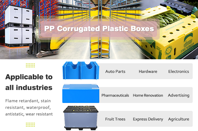 For logistics and pharmaceuticals, our moisture-proof, corrosion-resistant, and non-toxic designs comply with industry standards, ensuring products remain safe and intact throughout the supply chain.Investing in YUBO’s custom corrugated plastic boxes means investing in durability, sustainability, and cost savings. Made from non-toxic, odorless, and 100% recyclable PP material, our boxes are eco-friendly and can be reused multiple times, reducing waste and lowering long-term packaging costs