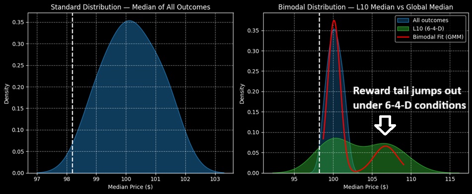 As you’ve seen in the past several months, I analyze stocks in a completely different manner than my colleagues. Explaining the process would take ages but in the simplest manner possible, my system involves an adaptation of a Kolmogorov-Markov framework layered with kernel density estimations (KM-KDE), treating price behaviors as a discretized, probabilistic space with real outcomes and distributions.