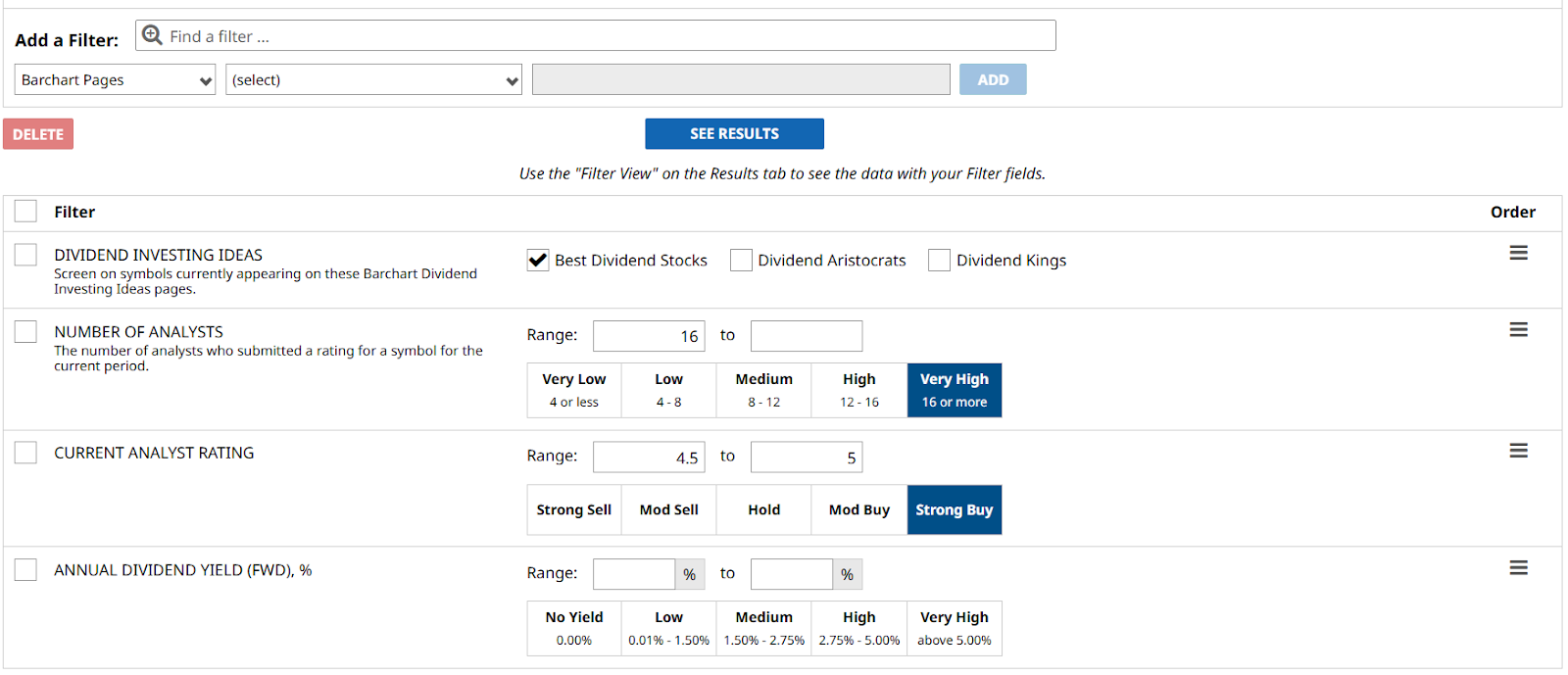 • Number of Analysts: 16 or more. I am looking for stocks that are known on Wall Street’s radar. The more analysts covering the stock, the higher the confidence in the sentiment.