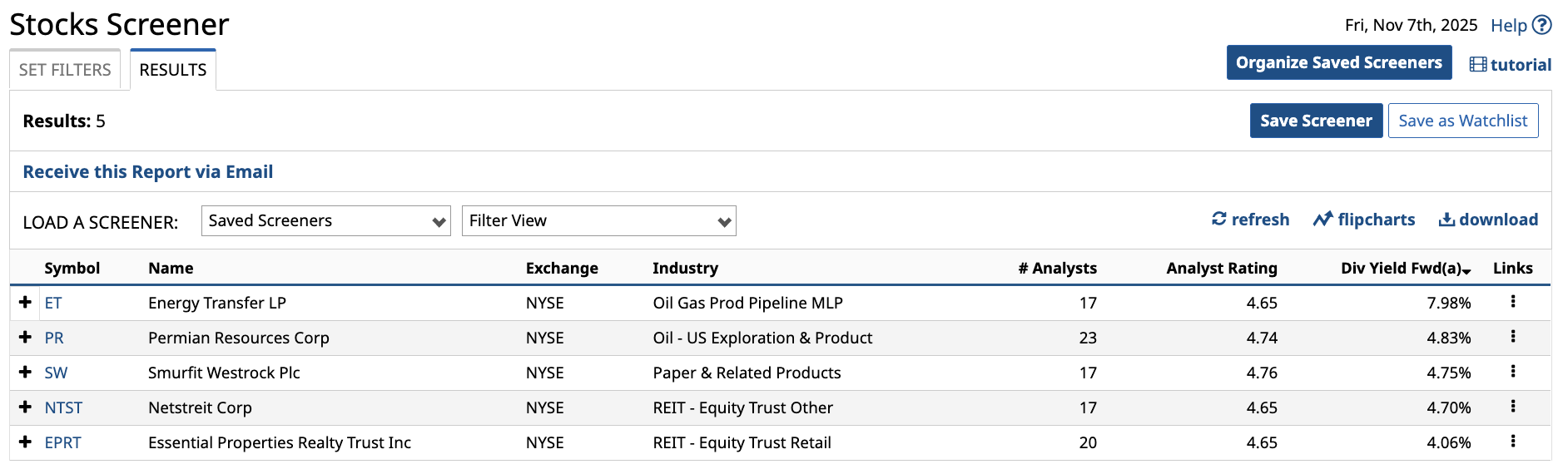 I used Barchart’s Stock Screener to find the highest-yielding companies on my watchlist.