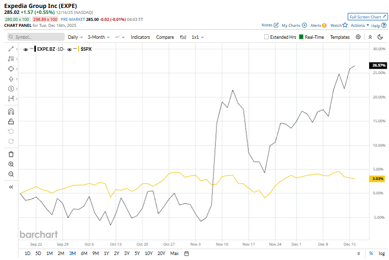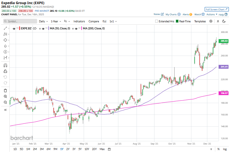Expedia recorded its 52-week high of $289.98 in the last trading session, underscoring strong upward momentum. The stock has climbed 26.7% over the past three months, significantly outperforming the S&P 500 Index ($SPX) 2.9% surge during the same period.
