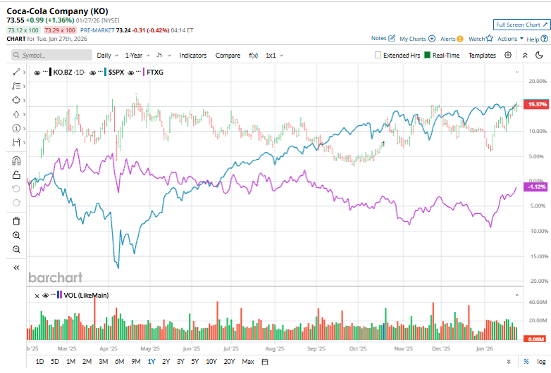 Coca-Cola continues to draw strength from steady demand for its everyday beverages, a vast and diversified global footprint, and formidable pricing power that helps safeguard margins during periods of cost pressure. This defensive appeal was on display on Jan. 20, when the stock advanced more than 1% even as the broader market retreated, underscoring its status as a safe haven amid mounting macroeconomic headwinds. With rising interest rates, slowing global growth, and persistent inflation dampening risk appetite, investors have increasingly rotated away from cyclical names and toward resilient consumer staples such as Coca-Cola.