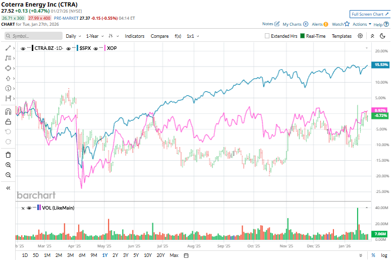 Narrowing the focus, CTRA has surpassed the SPDR S&P Oil & Gas Exploration & Production ETF (XOP), which declined about 1.9% over the past year and climbed 5.8% over the past six months.