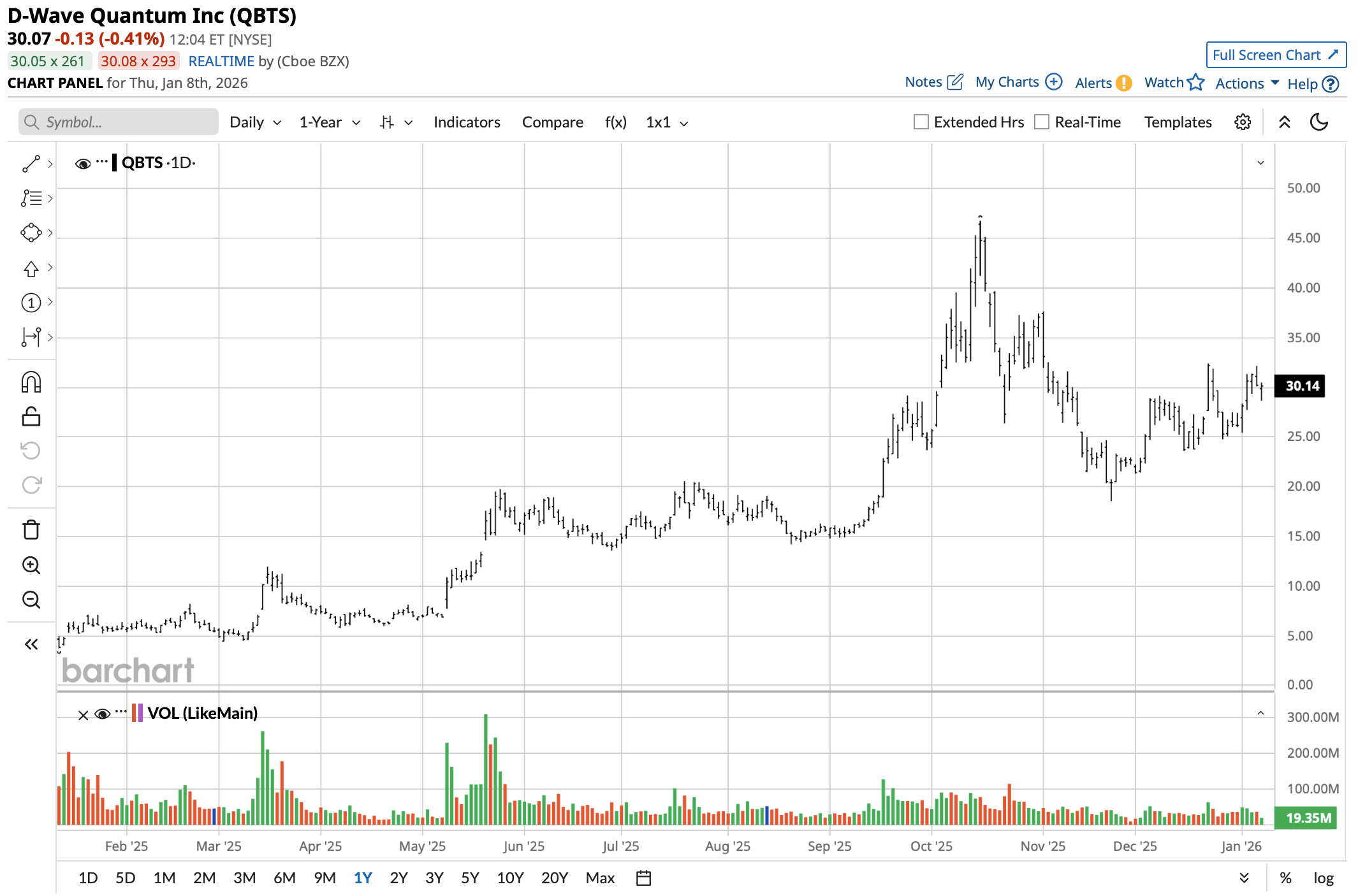 The shares of QBTS stock have been very volatile. Currently, the stock trades around the $30 mark, following a multi-week rally, and is well above the 52-week low price of $3.74 (although QBTS remains lower than the 52-week high of $46.75). QBTS has performed considerably better than the market as a whole over the last year.