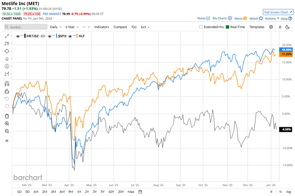 Shares of MetLife have dipped 4.6% over the past 52 weeks, lagging behind both the S&P 500 Index's ($SPX) nearly 17% increase and the State Street Financial Select Sector SPDR ETF's (XLF) 15.5% return over the same period.