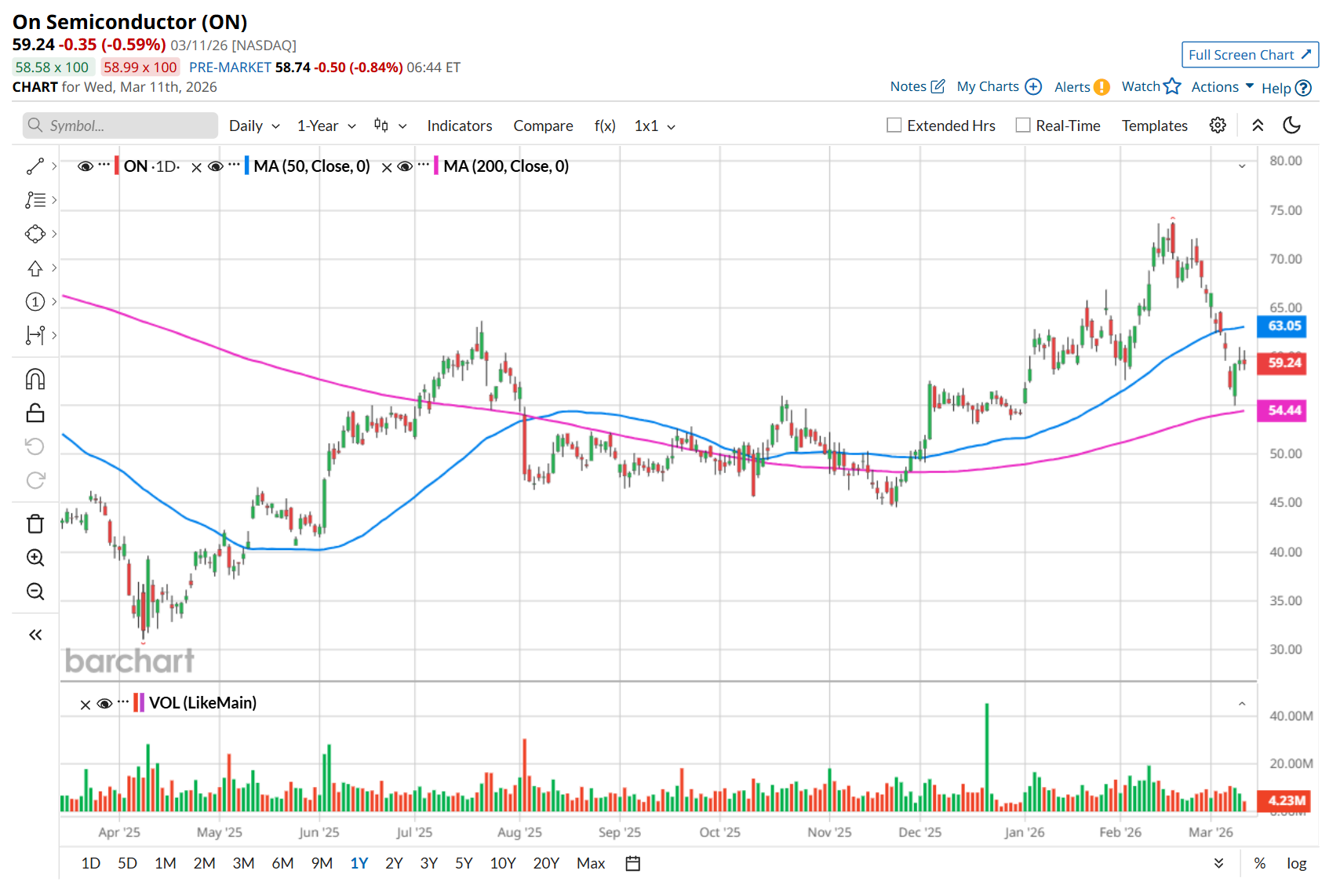 To confirm its bullish trend, ON has been trading above its 200-day moving average since late November. However, it has started trading below its 50-day moving average since early March.