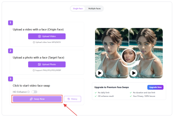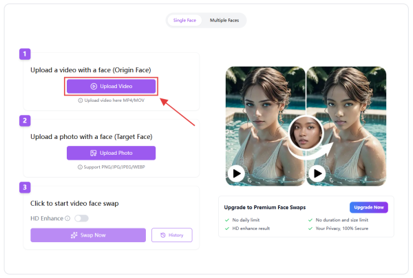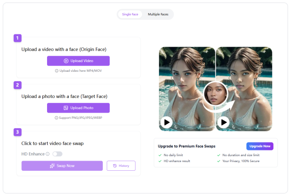 - 100% browser-based flow for video face swap online free—no installs, no drivers.