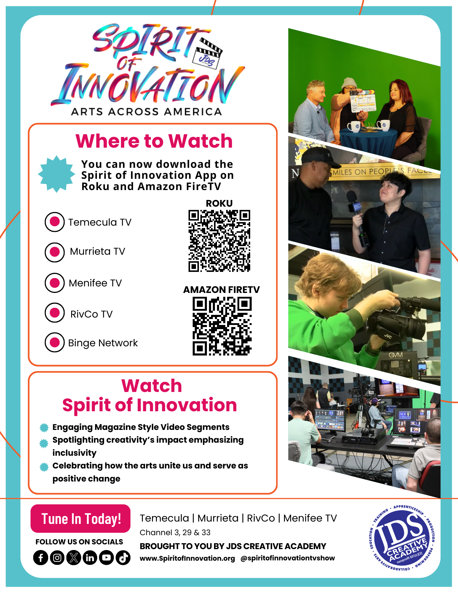Spirit of Innovation: Arts Across America recently underwent a rebrand, spotlighting JDS Creative Academy’s mission to advance education and training in the visual, performing, and digital arts. The show highlights the impact the arts have across local and national platforms, while still giving viewers the good-to-know, need-to-know, and impactful news they have come to expect.